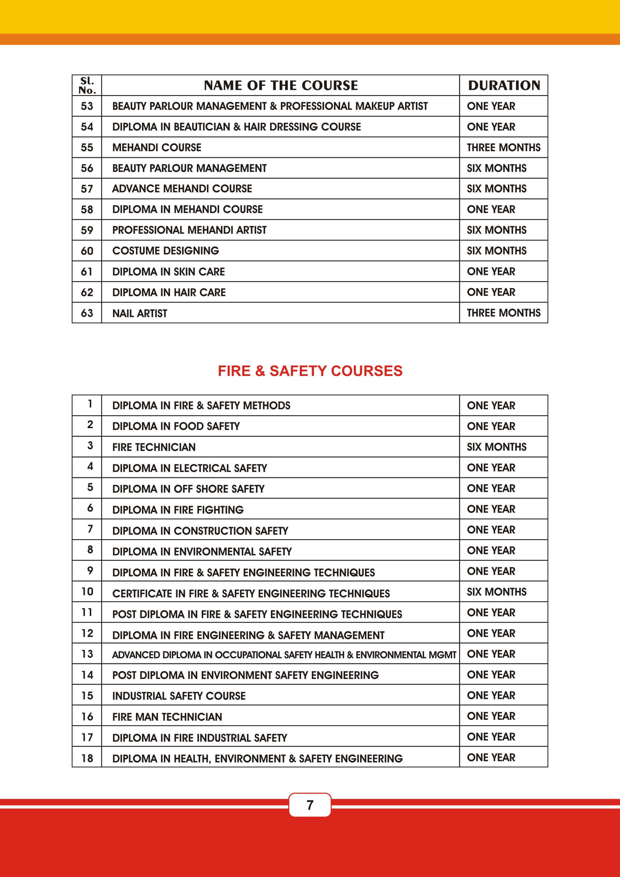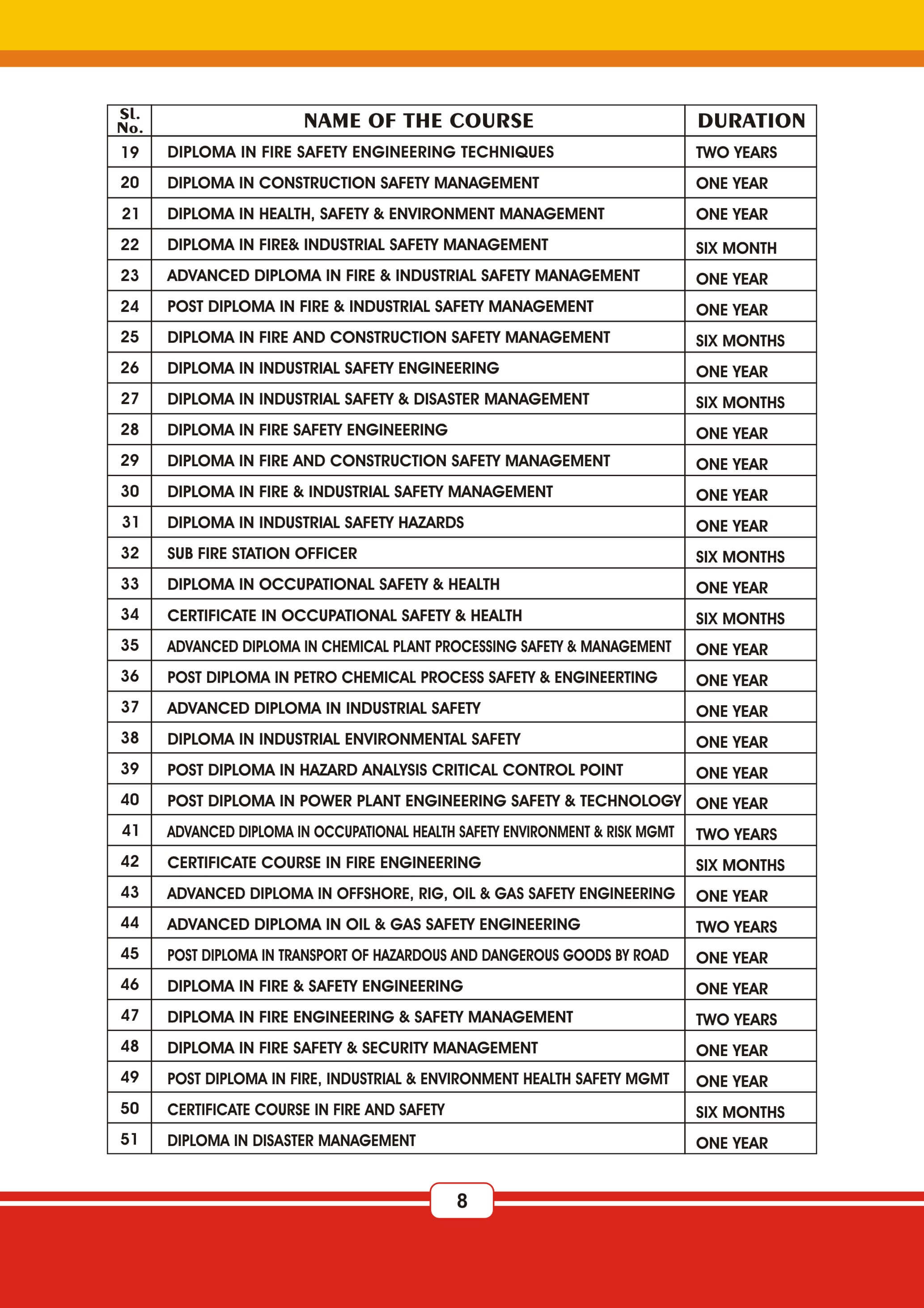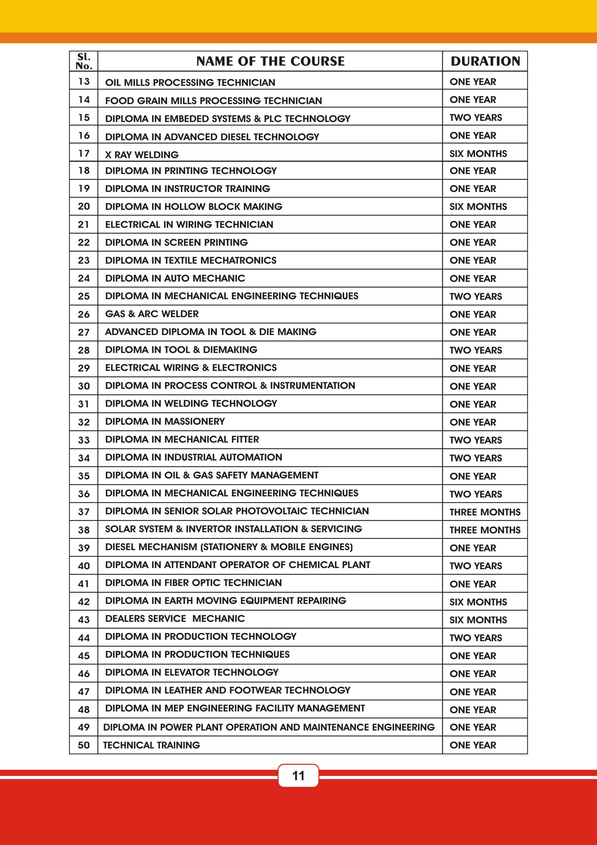 Fire & Safety Industrial Safety Nebosh & Iosh Land Survey Land Survey QA & QC NDT / QA & QC Aviation Airline & Airport Management Marine Diesel Engine Mechanic Cargo Management HI-Tech Welding Technology AC & HVAC Mechanism Civil Construction Supervisor Beautician Electrical And Electronicse Hotel Management JCB Operation & Maintenance Poclain Operation & Maintenance Crane Operation & Maintenance Forklift Operation & Maintenance