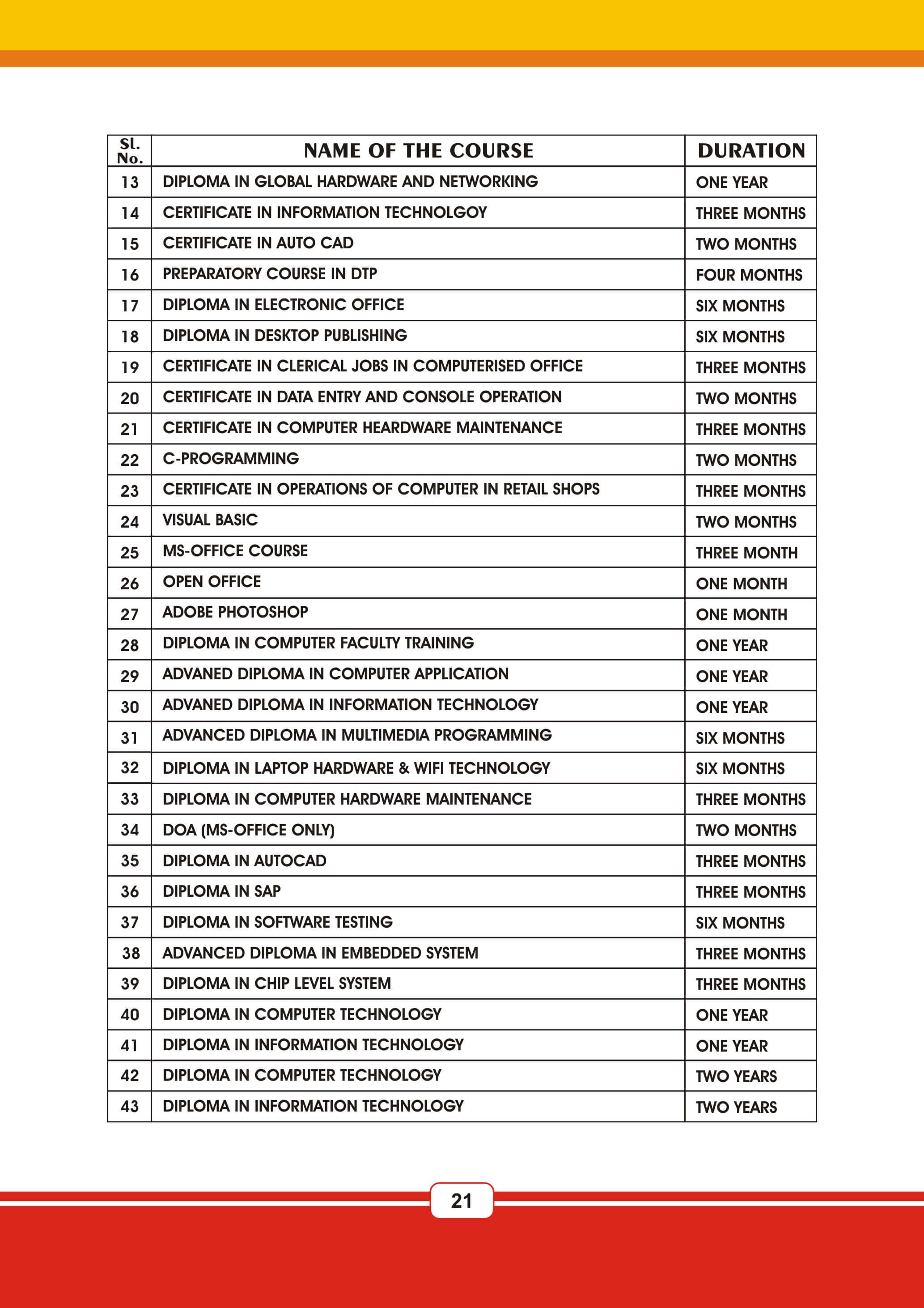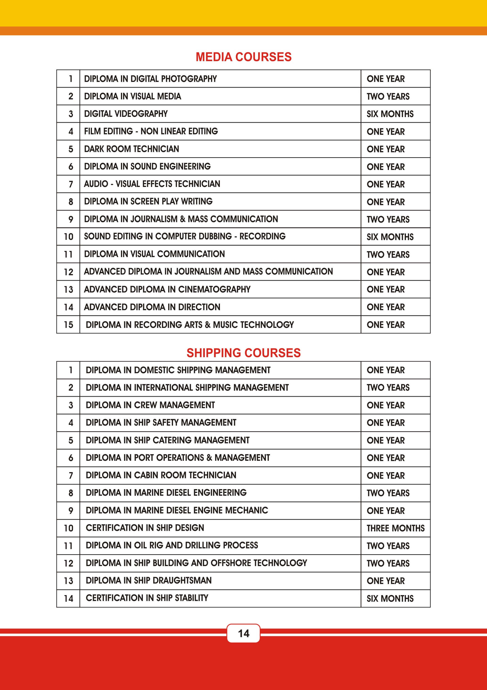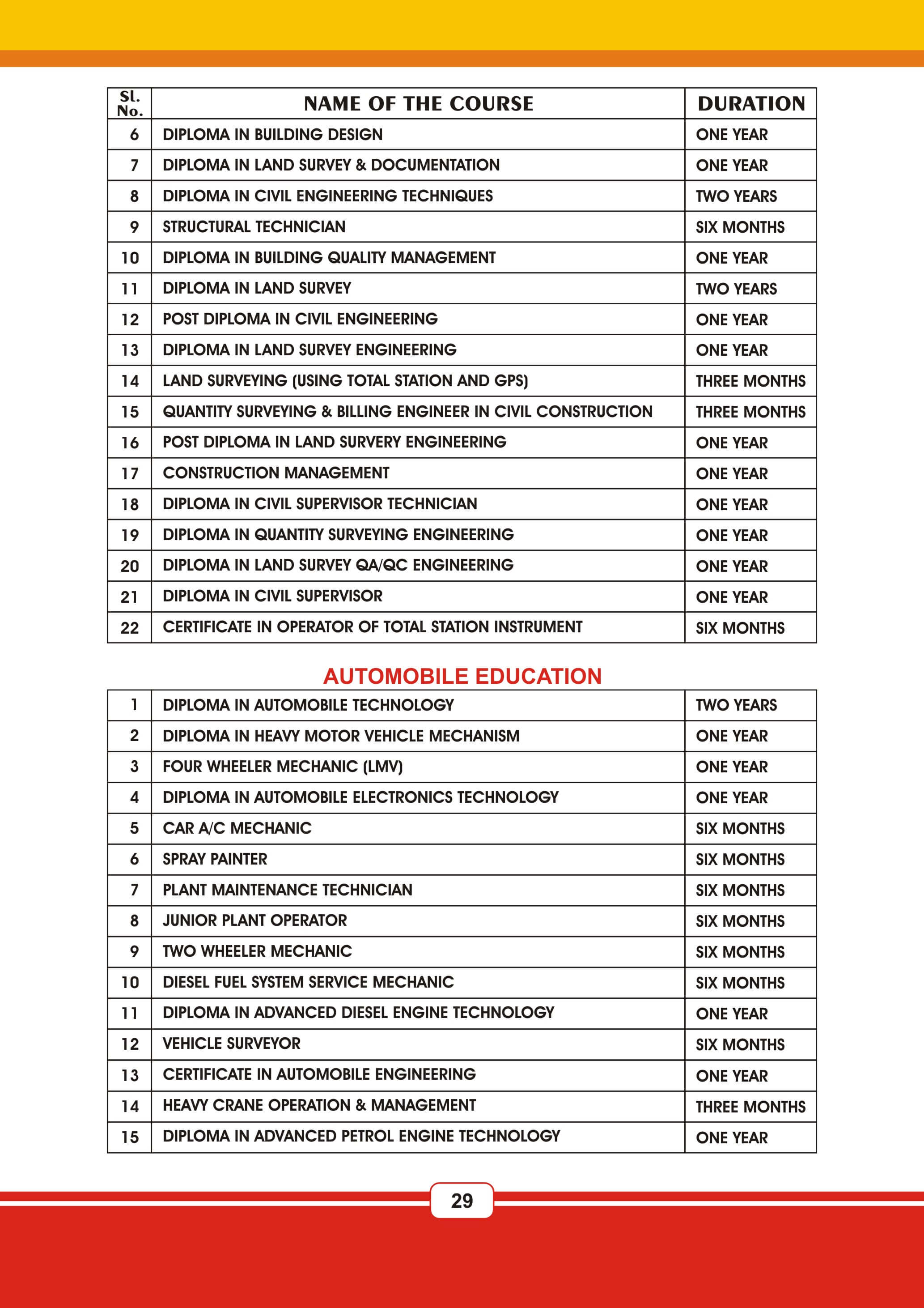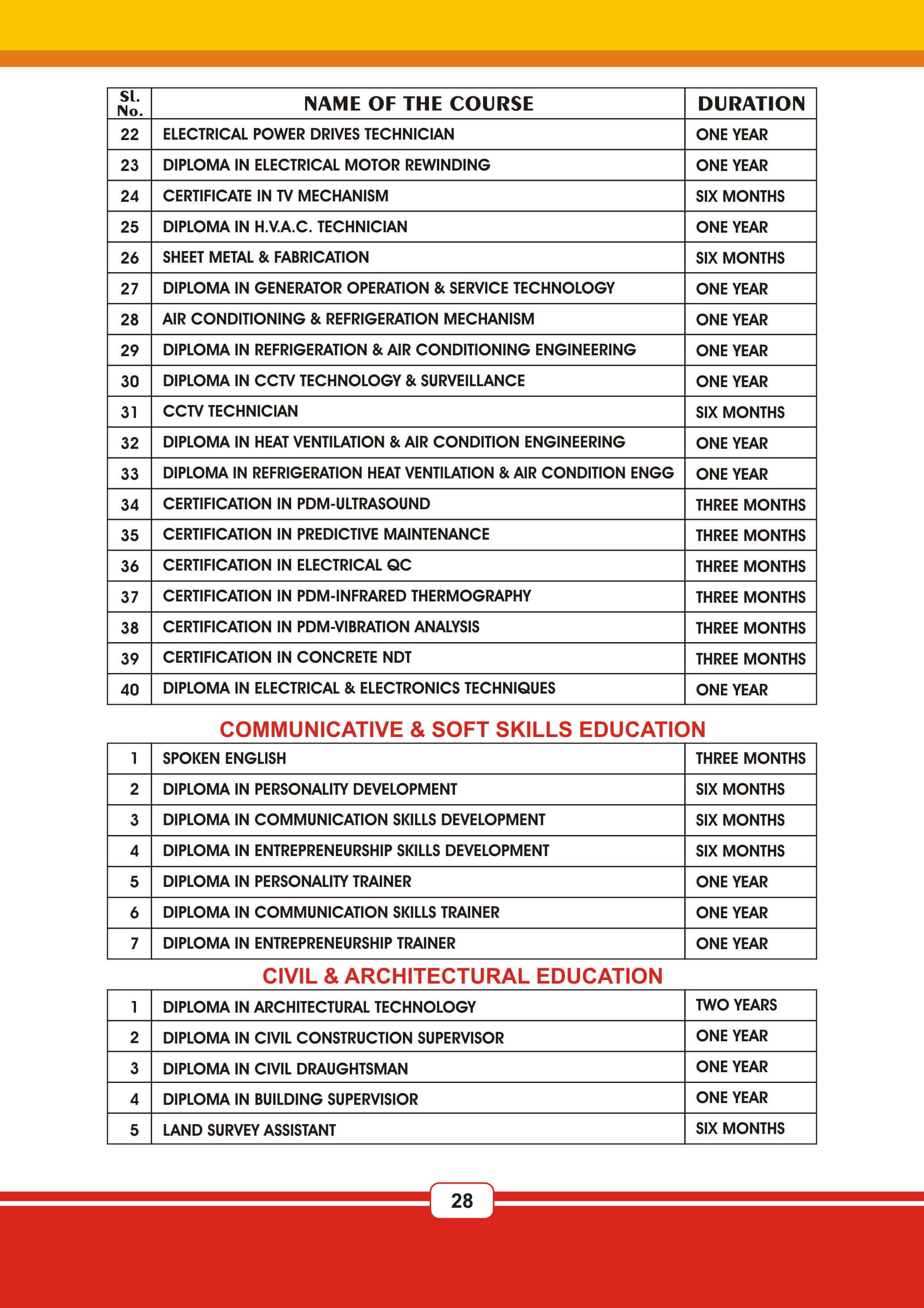 Fire & Safety Industrial Safety Nebosh & Iosh Land Survey Land Survey QA & QC NDT / QA & QC Aviation Airline & Airport Management Marine Diesel Engine Mechanic Cargo Management HI-Tech Welding Technology AC & HVAC Mechanism Civil Construction Supervisor Beautician Electrical And Electronicse Hotel Management JCB Operation & Maintenance Poclain Operation & Maintenance Crane Operation & Maintenance Forklift Operation & Maintenance